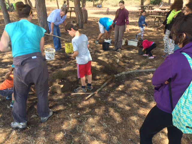 No final, crianças e adultos meteram mãos à obra para construir um camaleão com materiais naturais - palha, terra, pedras, troncos e folhas.