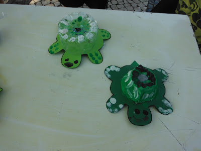 No final os participantes construíram pequenos cágados com materiais reciclados - garrafas PET e caixas de ovos.