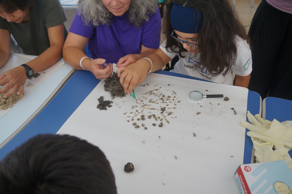 Nesta actividade para pais e filhos, foram abordadas as aves de rapina nocturnas e a sua alimentação. Uma vez que estas aves não conseguem digerir parte dos ossos e os pelos das suas presas, acabam por regurgitar umas pequenas bolas às quais chamamos egagrópilas ou plumadas. Com o auxilio de esquemas e lupas foram observadas algumas egagrópilas de forma a identificar as presas preferidas de bufos, corujas e mochos.